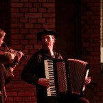 Im angebauten Gemeindehaus gibt es eine schöne Bühne und Raum für gut 100 Zuschauer. Hier wollten wir letzten Freitag, am 7. Dezember spielen. Leider fanden sich aufgrund des Wintereinbruchs nur eine Handvoll Zuhörer ein. Im vorderen Bereich des Gemeindehauses ist die Außenwand der Kirche integriert, hier haben wir es uns mit dem Publikum in einer Ecke mit ein paar Stühlen und Bistrotischen gemütlich gemacht, und es ist noch ein sehr schönes Konzert geworden!