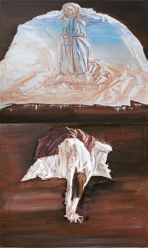Es handelt sich um das Bild „Schmerz“, Öl auf Leinwand, 200 x120 cm, 2013