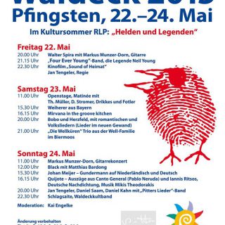 Pfingsten 2012 – eine kleine Fotonachlese Die Festivals auf der Burg Waldeck in den 60er Jahren waren die ersten deutschen Open-Air-Festivals überhaupt und sie bildeten einen entscheidenden Einschnitt in der deutschen Folk-Geschichte. Hannes Wader, Reinhard Mey, Franz-Josef Degenhard und viele andere Größen des politischen Liedes sind hier in den Jahren von 1964 bis 1969 aufgetreten. In den nachfolgenden Jahrzehnten gab es ein Waldeck-Festival in unregelmäßigen Abständen, seit 2004...