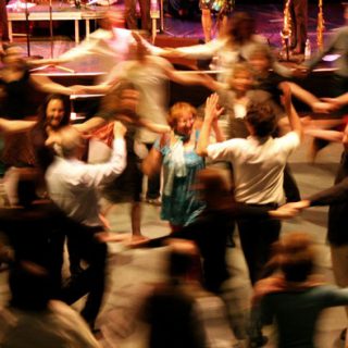 zu Deutsch: Tanzhaus Dieses von Georg Brinkmann initiierte Projekt hatte im November 2016 seinen vielversprechenden Start: reger Zuspruch, volles Haus und beste Stimmung. Das Konzept ist: keep it simple. Die Musiker sind gleichzeitig die Tanzanleiter. Es gibt keine Sponsoren oder Zuschüsse, wir leben von dem, was der Eintritt bringt. Georg ist Tanzmeister bei den Klezmertänzen, Steffi und ich spielen dazu. Die Balkantänze leitet Steffi an, Georg und ich...